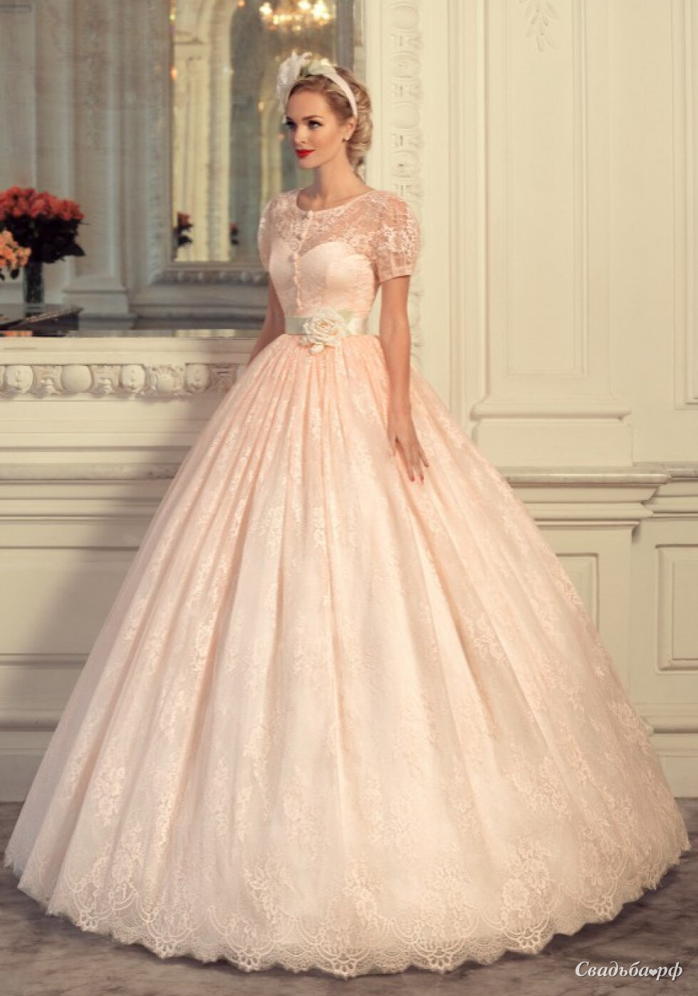 Свадебное платье Мадонна из коллекции "Jazz Sounds" Tatiana Kaplun™ Материал: Кружево, фатин, неп. Возможные цвета: белый, молочный, розовый. Возможные размеры: 40р. - 48р.; 28800р. - цена данной модели с фатиновой юбкой и болеро; 4900р. - цена болеро